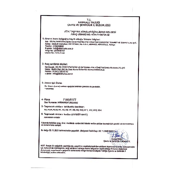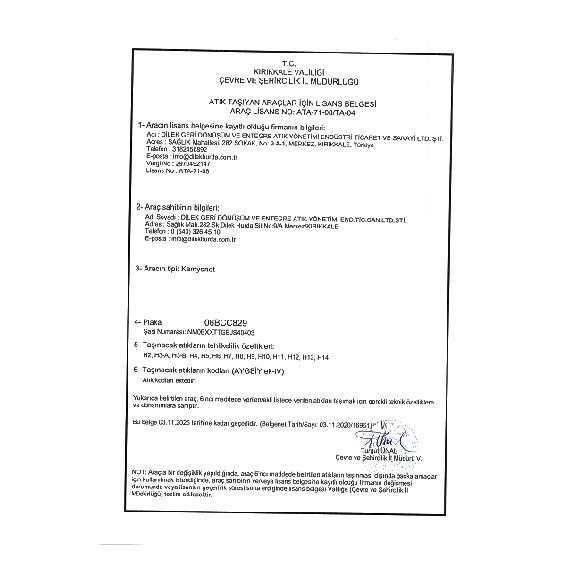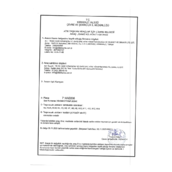 Araç Lisansları06 BCC 829 ARAÇ LİSANSI71 AAE 836 ARAÇ LİSANSI71 AAR 177 ARAÇ LİSANSI71 BF 876 ARAÇ LİSANSIATIK TAŞIMA FİRMA LİSANSITAŞIMA İZİN İŞLEMLERİ